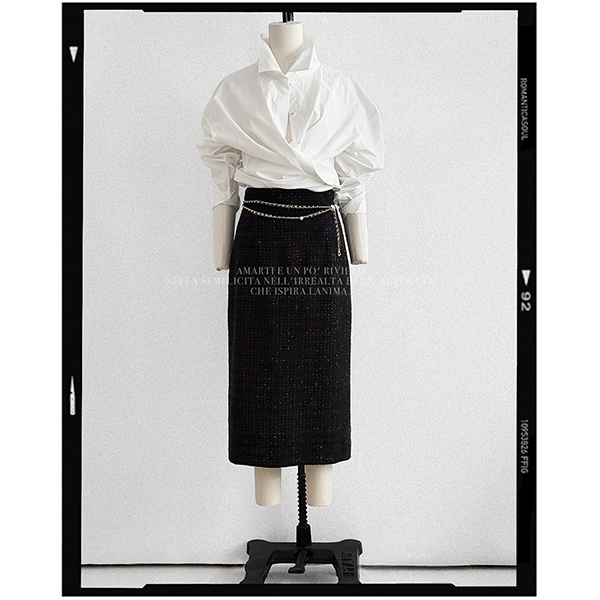 _ 무릎 아래로 내려오는 세미 롱 스트레이트 스커트