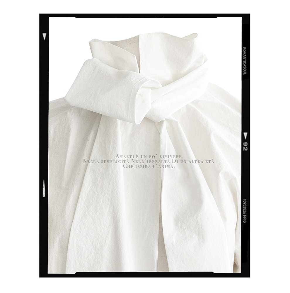 모델이 연출한 화이트 스카프는 세트구성입니다.