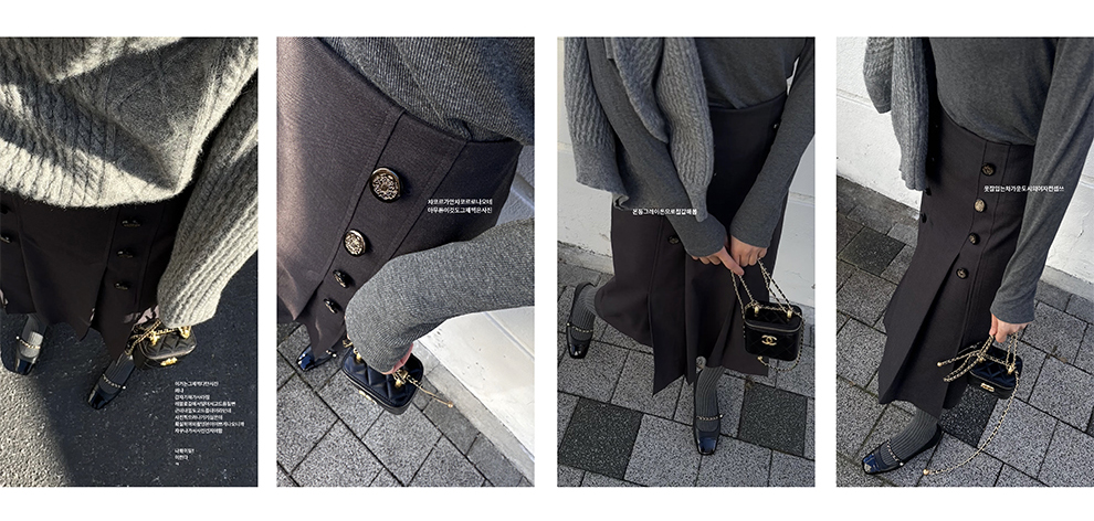 _ 허리와 힙 라인까지는 바디 라인에 맞게 내려오고 트임 아래로는 퍼지는 디자인