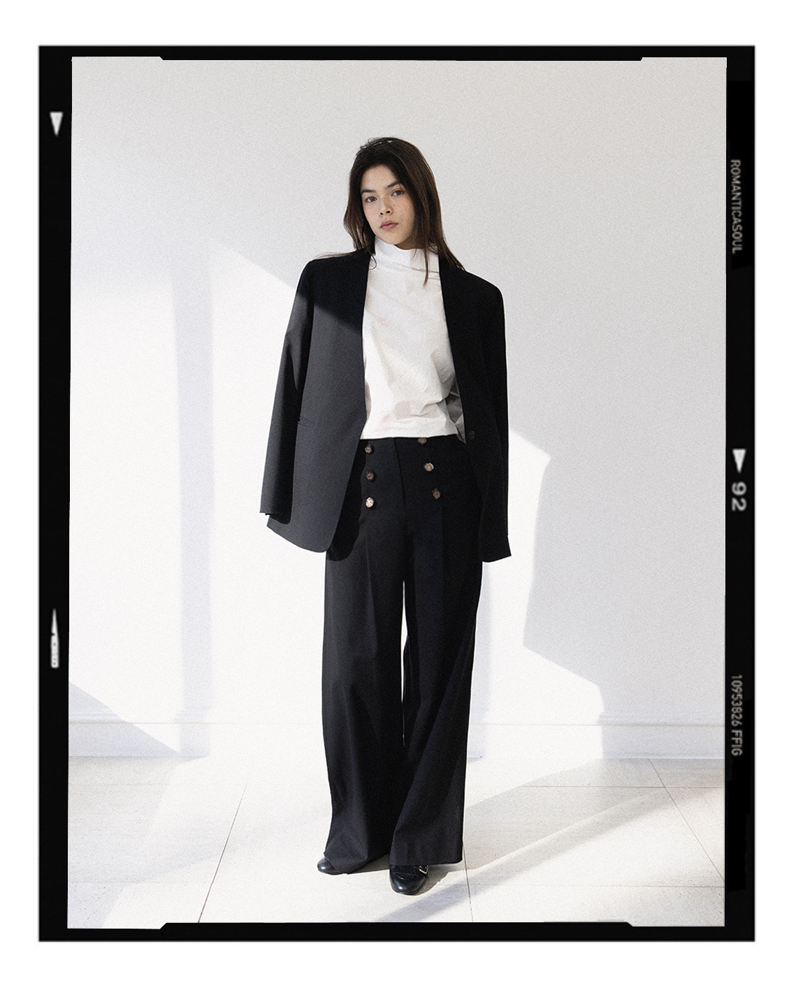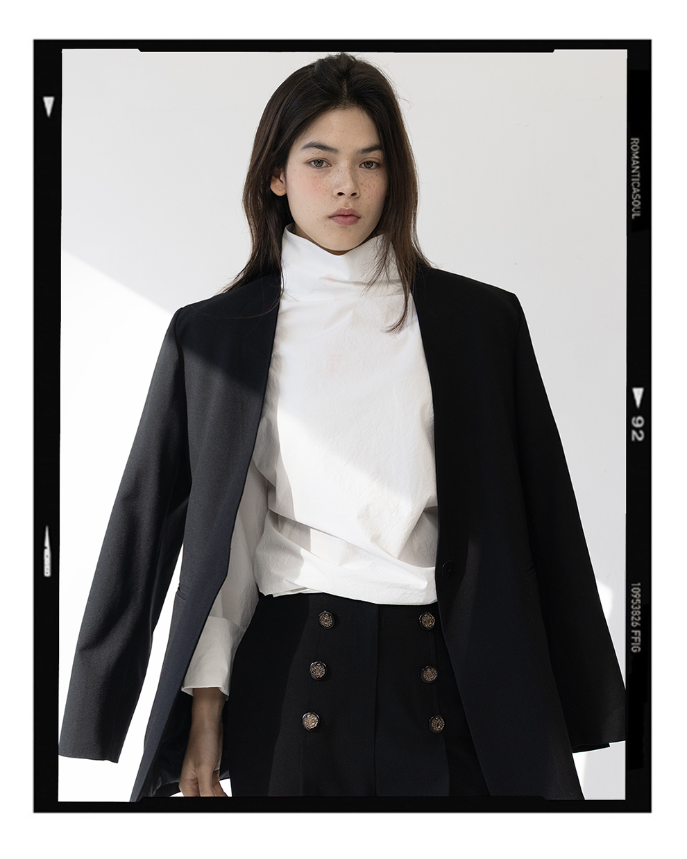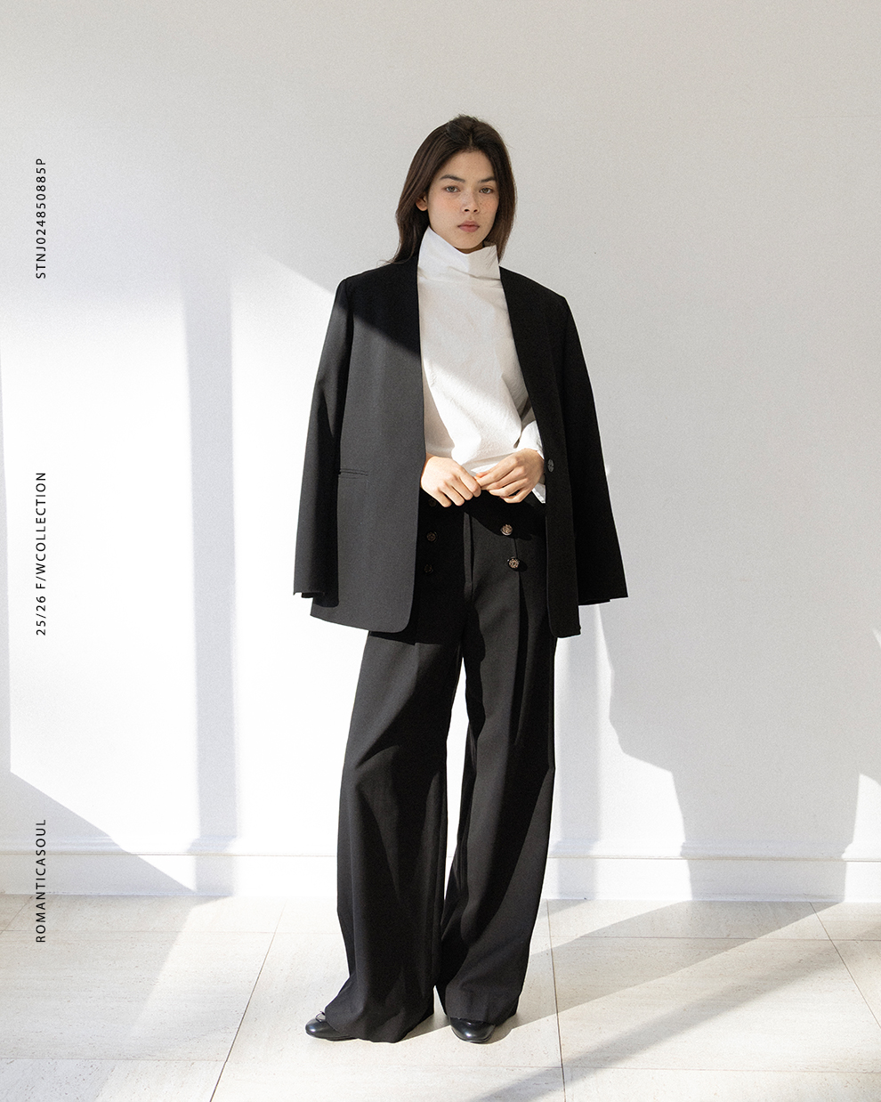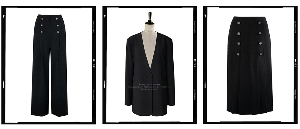 _ 싱글 여밈의 노카라디자인과 두 개의 포켓 디자인