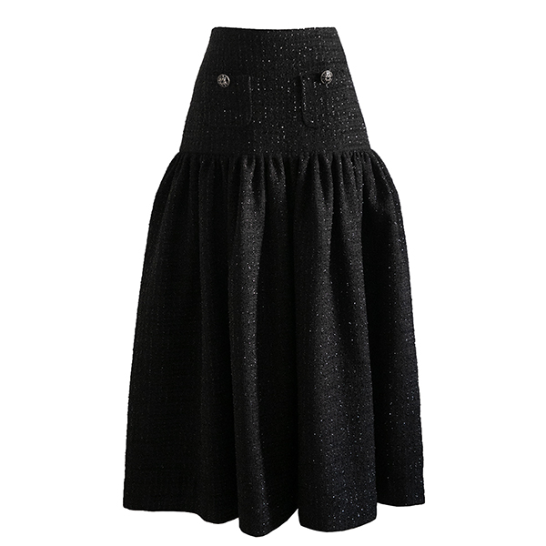 _ 간절기 중량감의 코튼 믹스드 트위드 패브릭 롱스커트